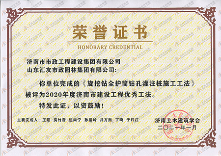 2020年度济南市建设尊龙官方官网优良工法《旋挖钻全护筒钻孔灌注桩施工工法》
